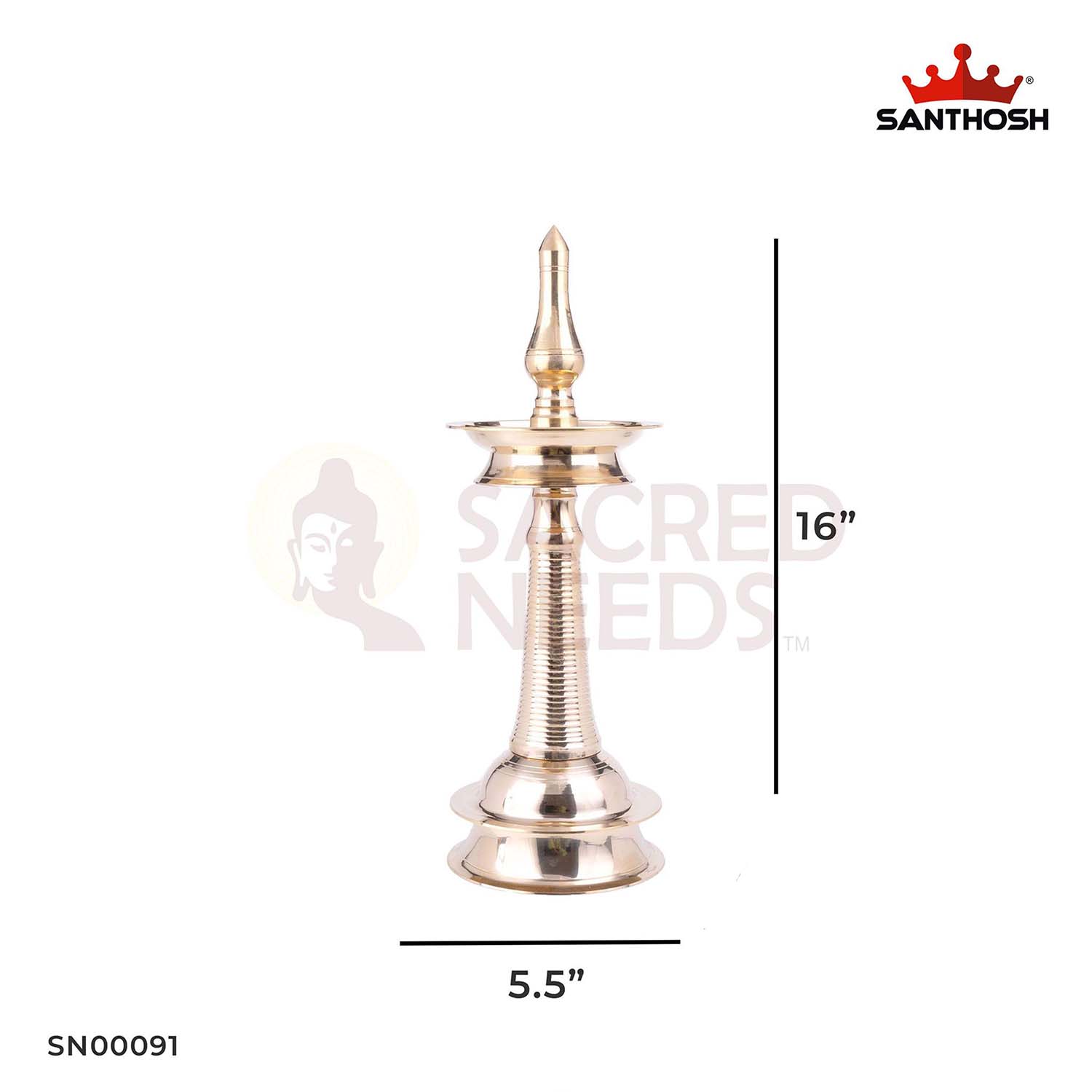 Bring home this 16-inch heavy brass vilakku to infuse your surroundings with peace, positivity, and divine grace.
