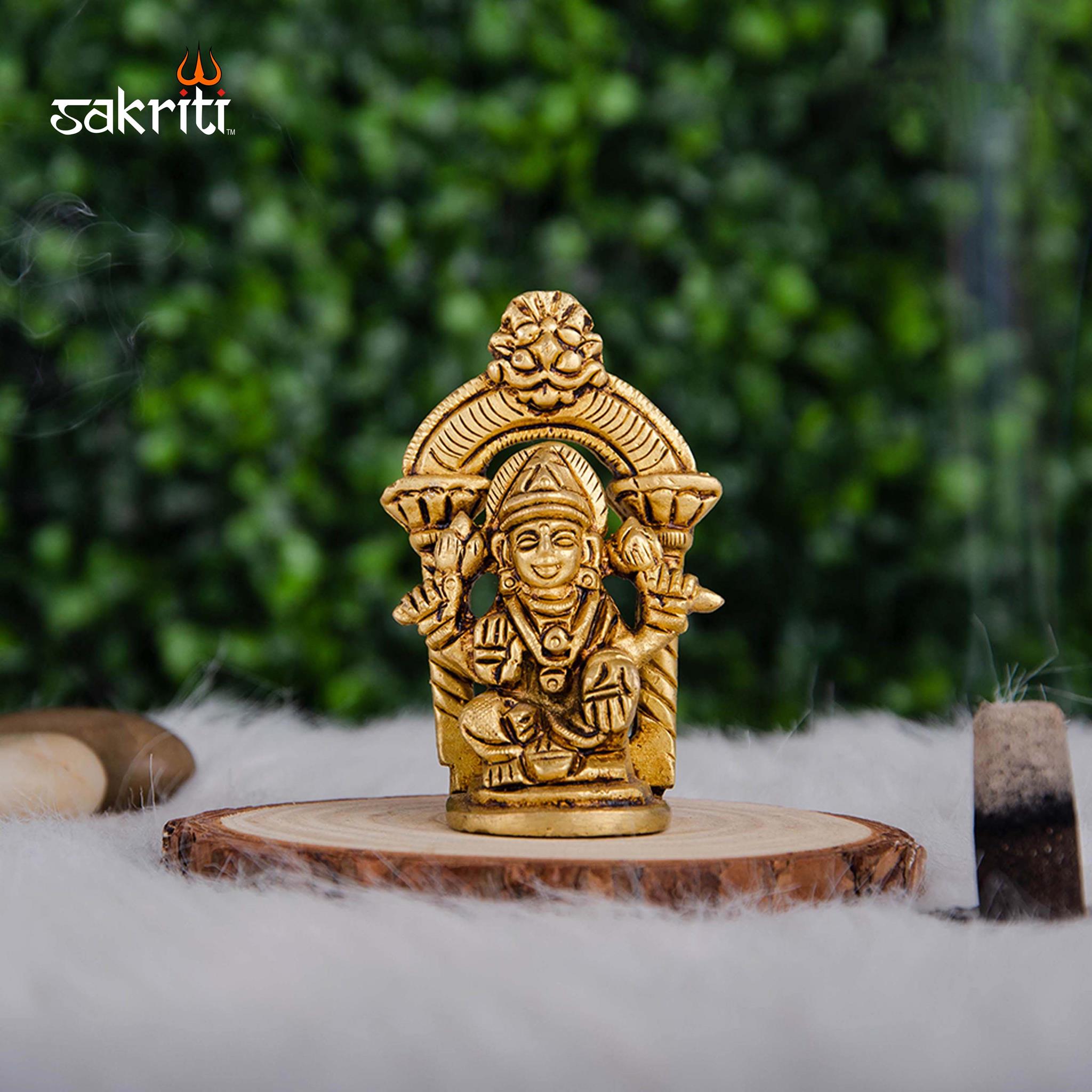 Beautiful Brass Lakshmi with Arch Idol (3 Inch Height) – a divine Mahalakshmi statue with prabhavali, perfect for pooja, temple décor, and festive gifting.