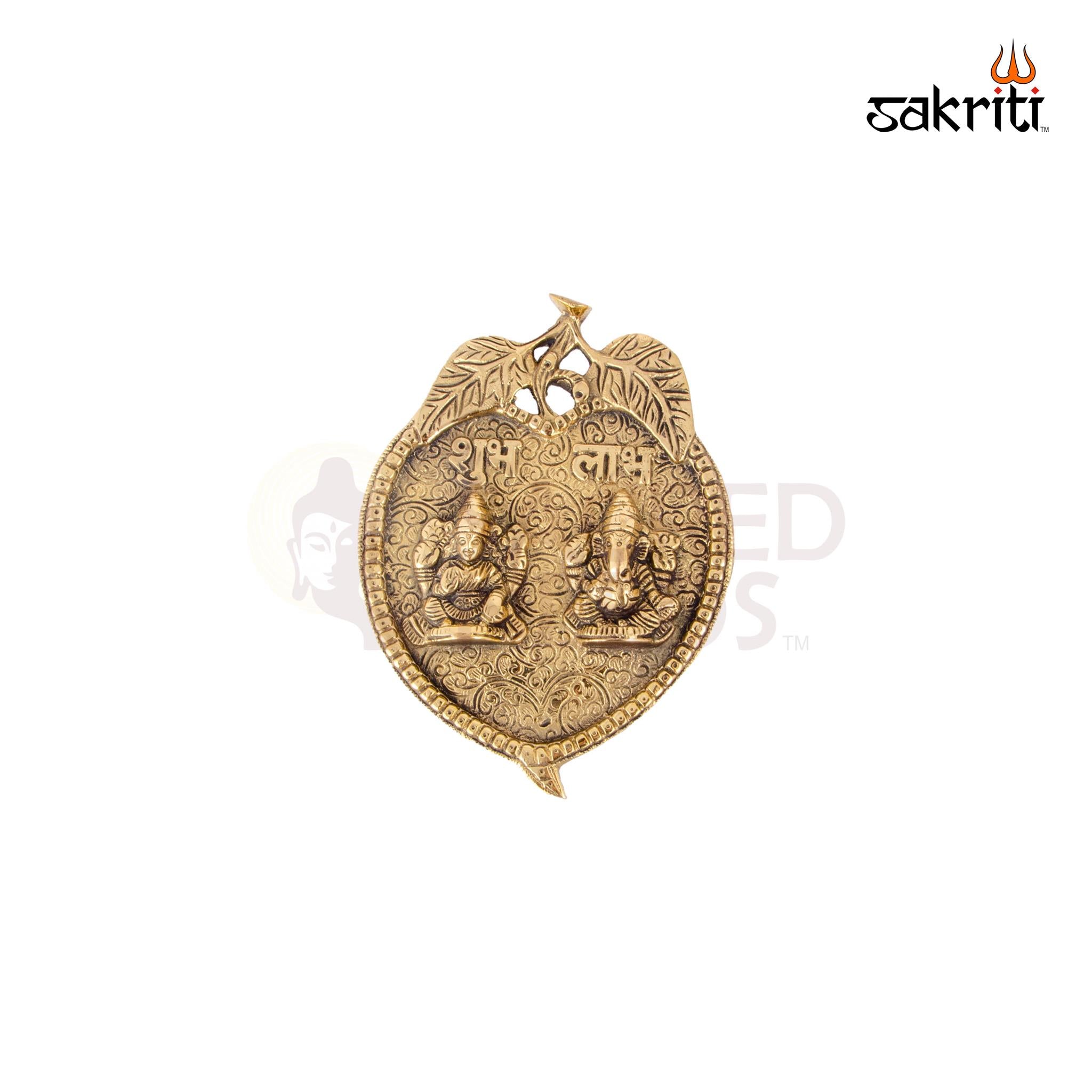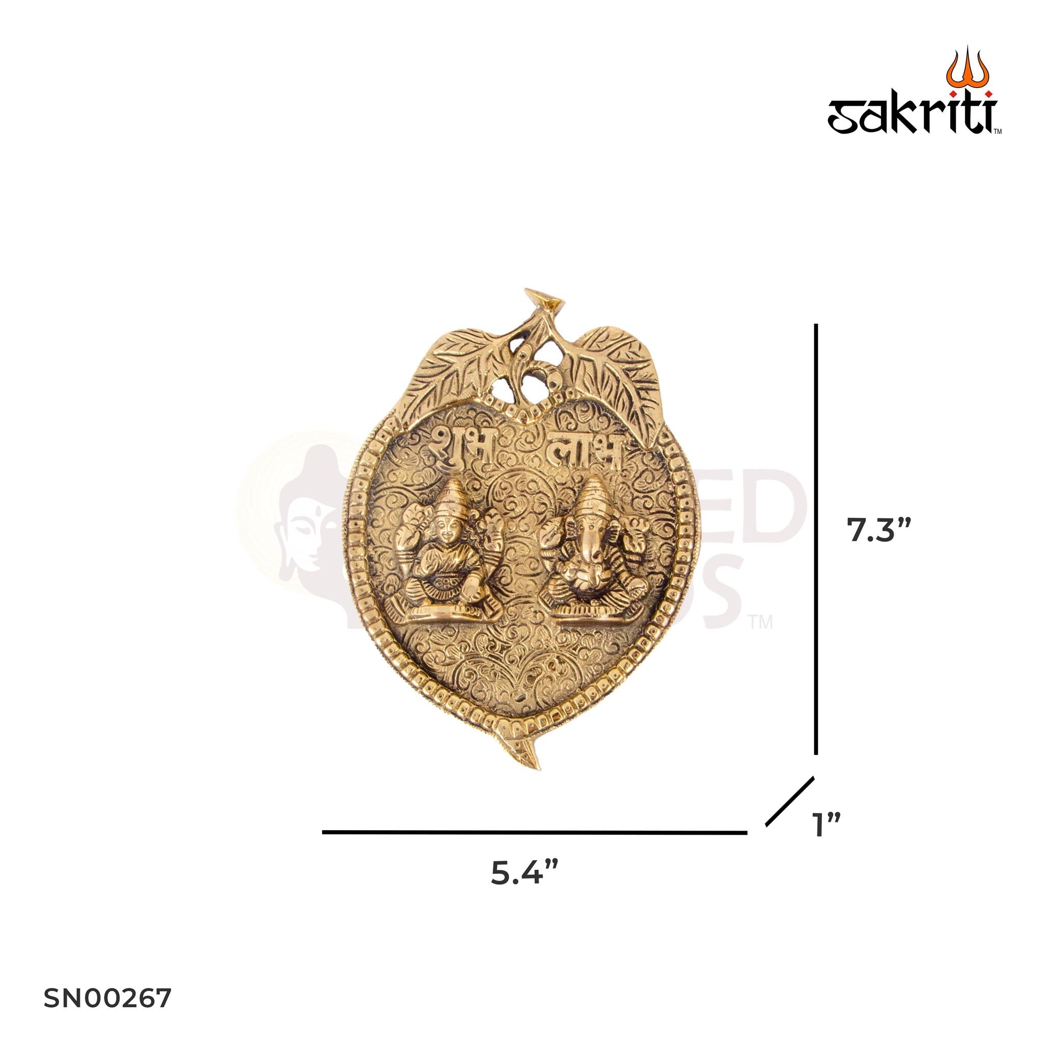 Product Name: Brass Leaf Ganesha-Lakshmi Mounted – 7.3 Inch Height