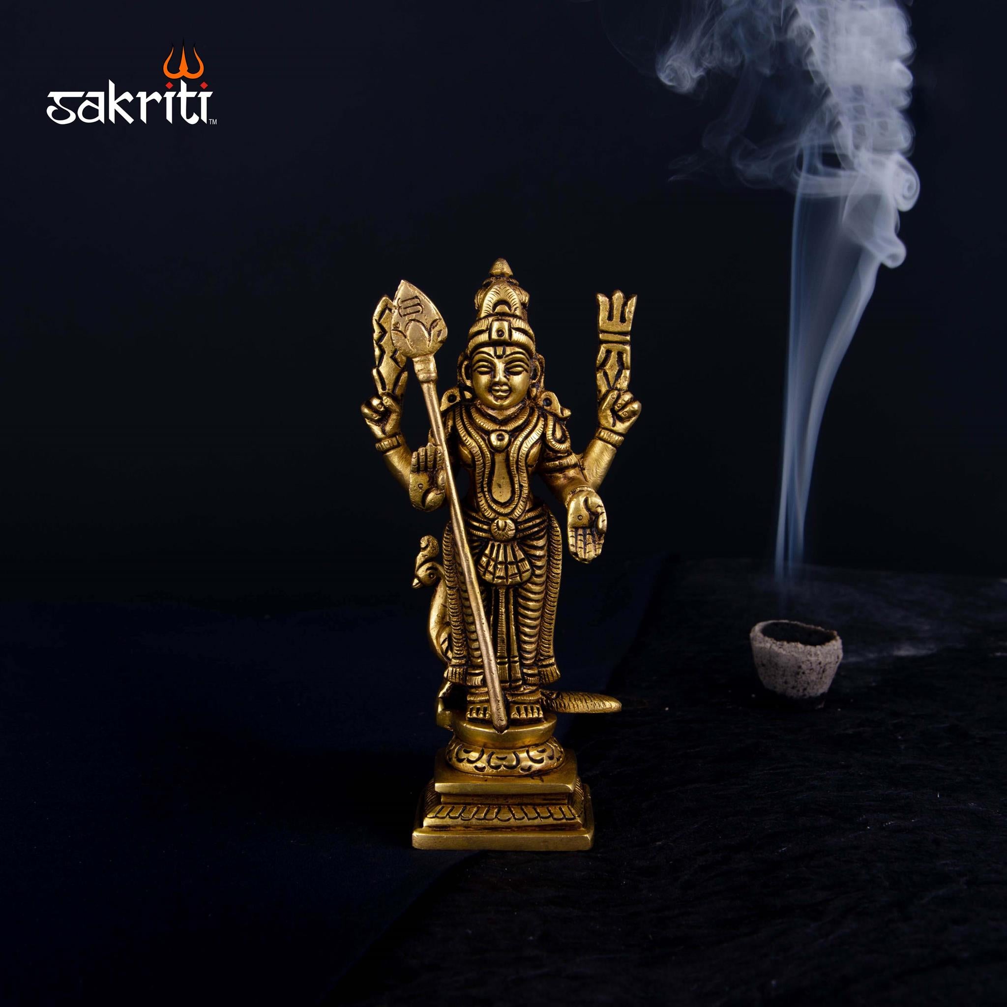The Brass Murugan – 6.1 Inch idol is a traditional representation of Lord Muruga (Kartikeya/Subramanya), the son of Lord Shiva and Goddess Parvati, and the divine warrior who symbolizes wisdom, valor, and protection. Handcrafted from premium quality brass, this idol reflects the intricate detailing and cultural richness of South Indian artistry.