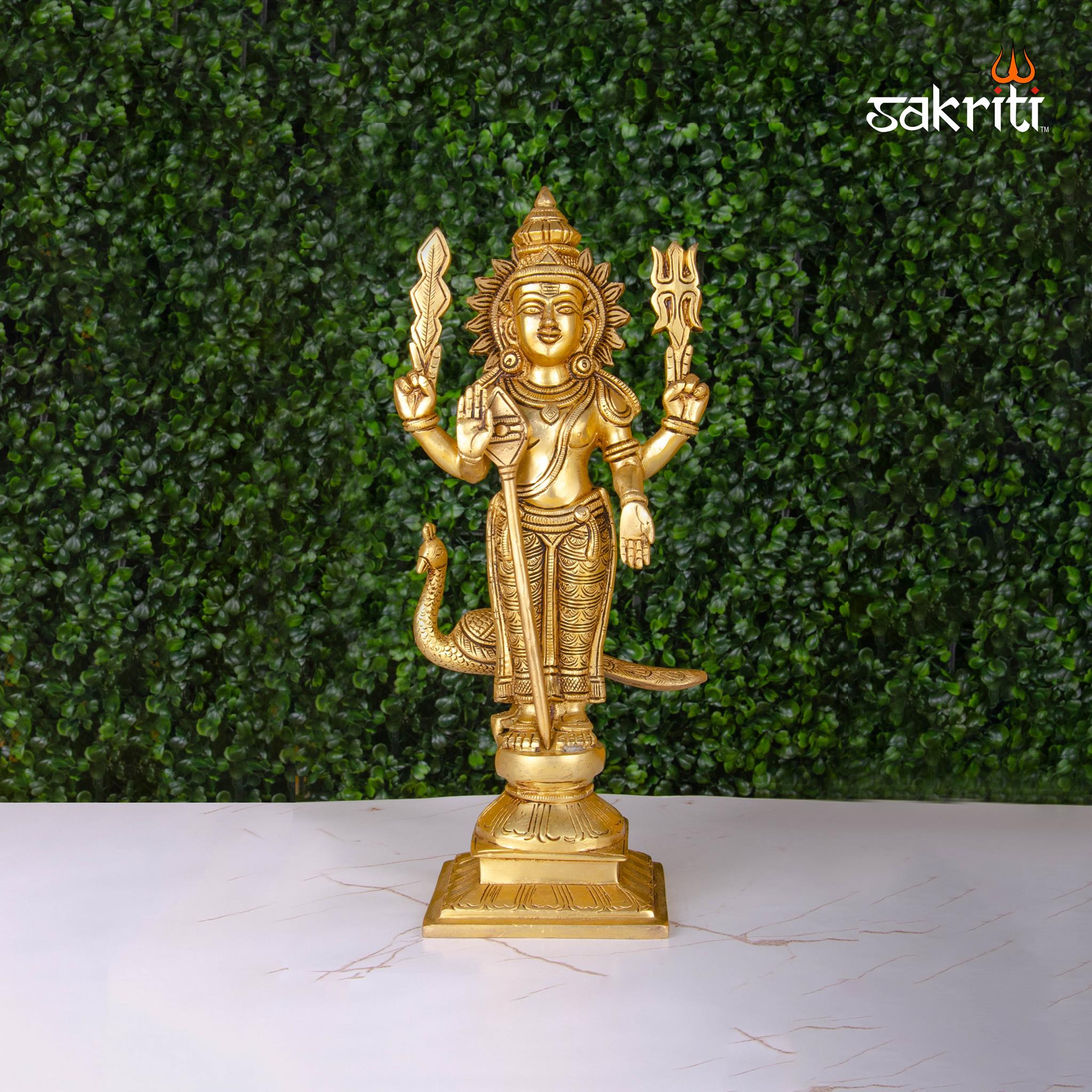 Invoke divine blessings with this Brass Murugan Idol, a beautifully handcrafted representation of Lord Murugan. Standing 11.2 inches tall, this statue is perfect for Kavadi Pooja, temple installation, or home altars. Made from high-quality solid brass, it showcases intricate detailing of Murugan’s traditional iconography, including his Vel (spear) and majestic posture. This idol not only serves as a spiritual centerpiece but also as a decorative symbol of devotion and prosperity, making it an ideal gift for religious ceremonies and festivals.