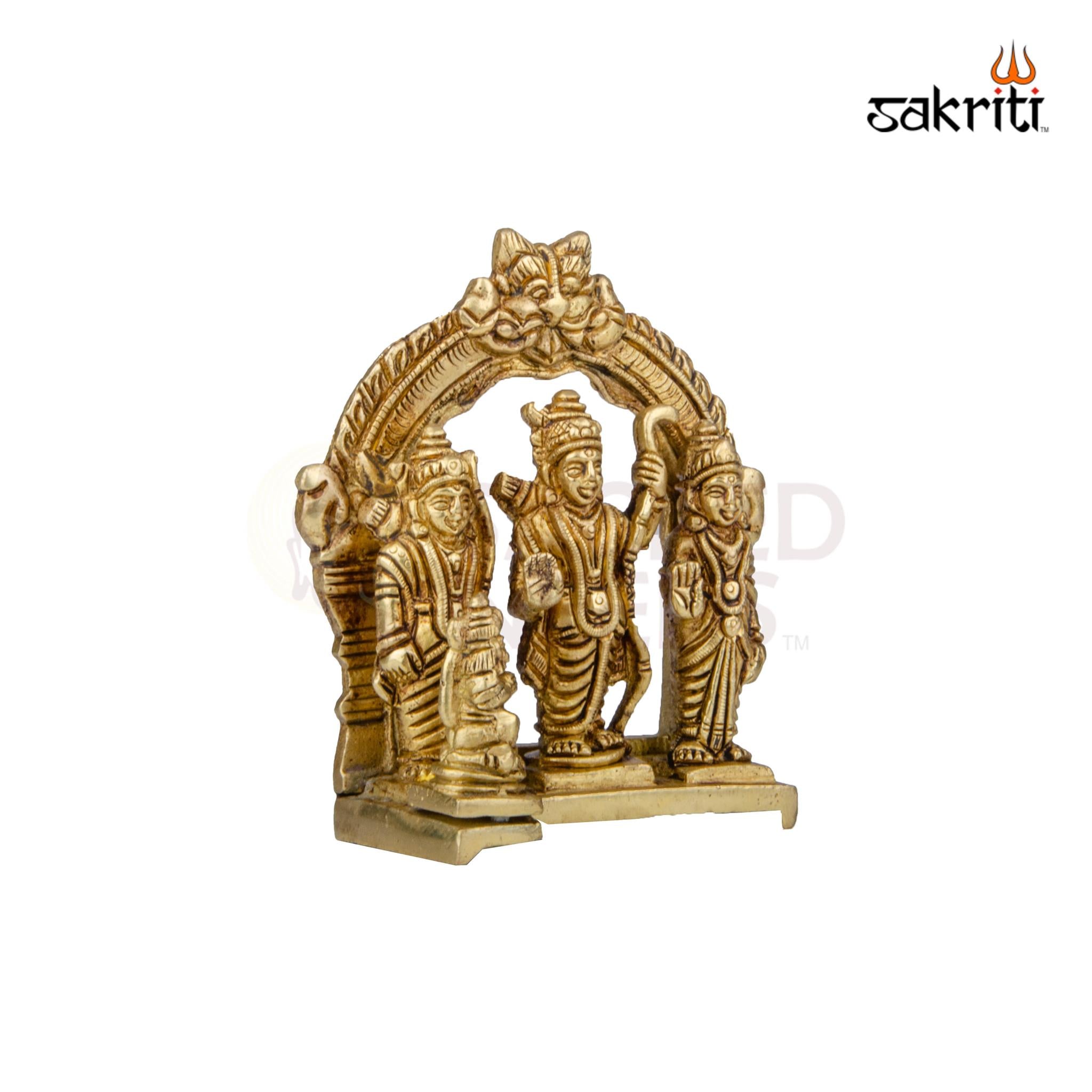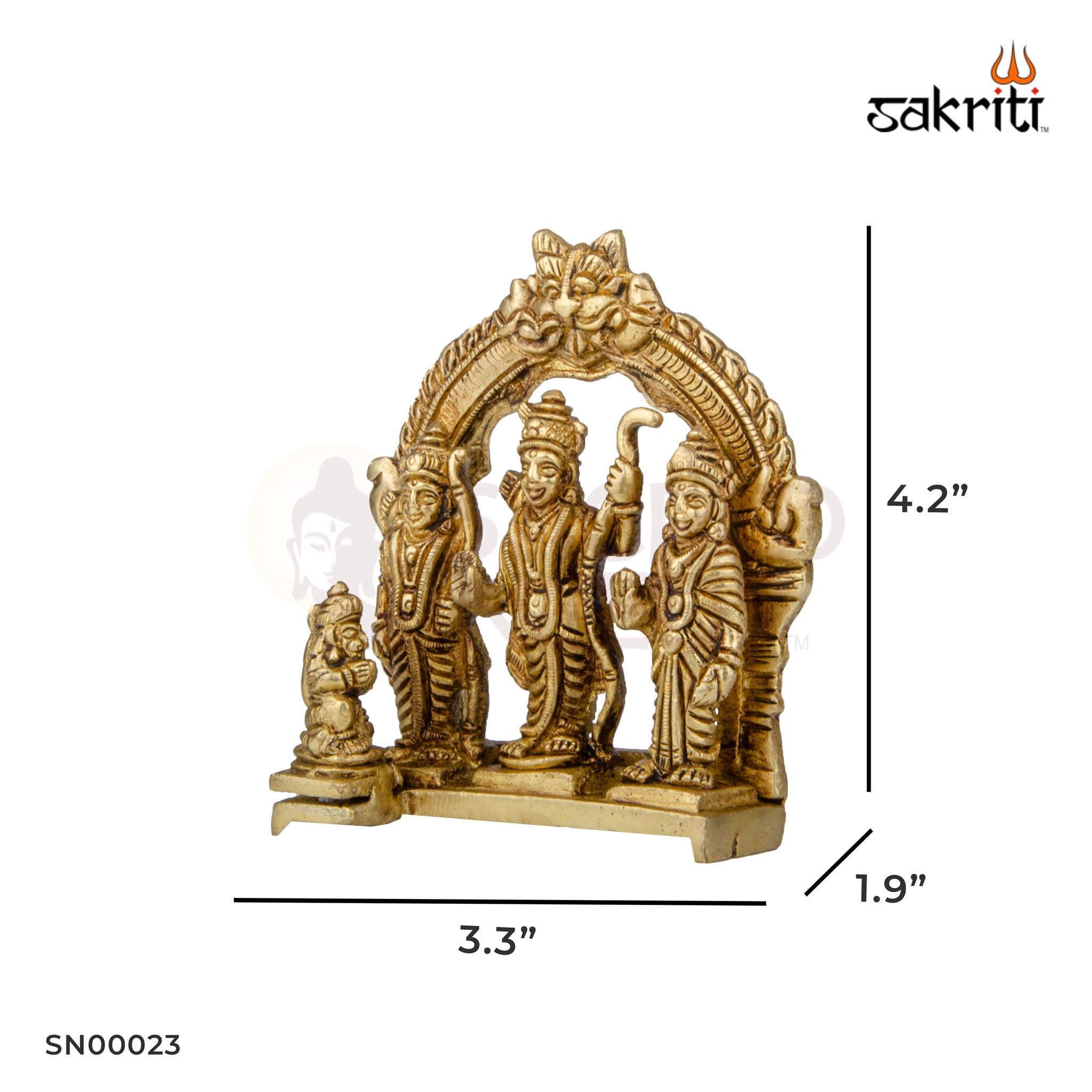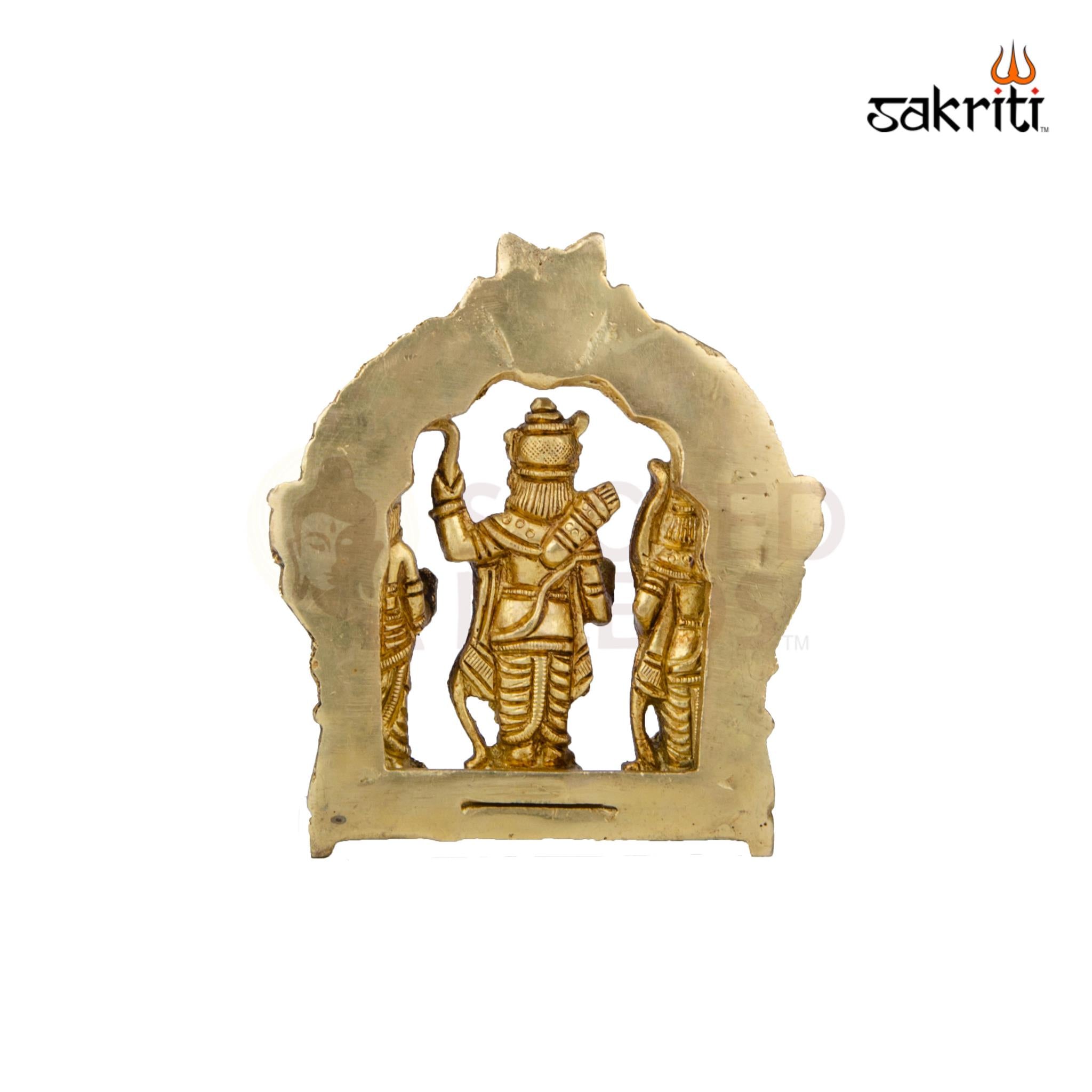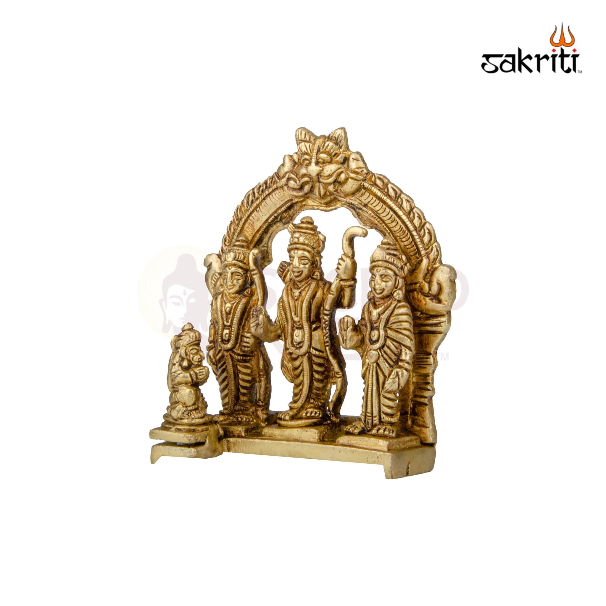 Sacred Brass Ram Darbar Idol (4.2 Inch Height) – a beautifully crafted Ram, Sita, Lakshman, and Hanuman statue perfect for pooja, temples, and festive home décor.