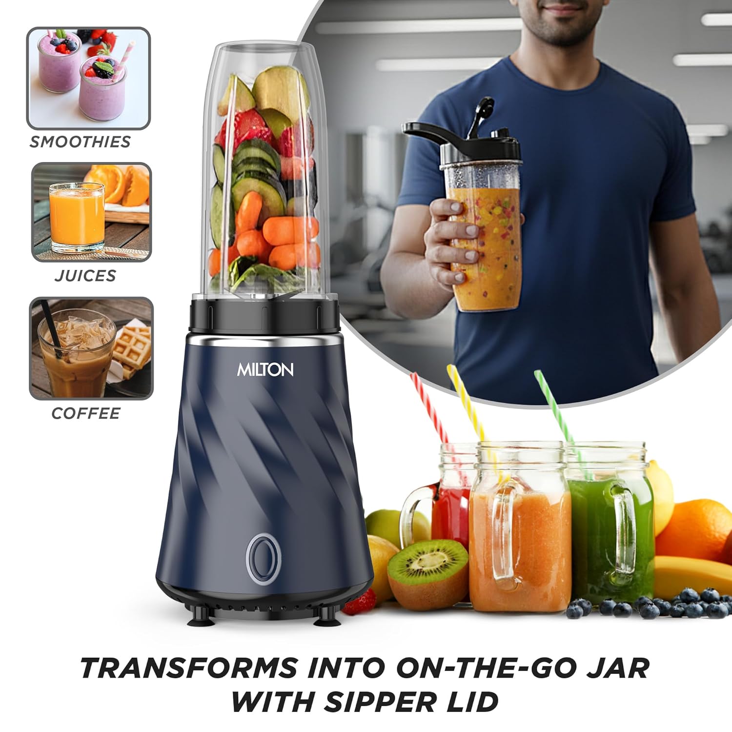 The Milton Bullet Mixer Grinder Mini 1 Jar 1 Juicer Blue is a smart and compact kitchen appliance designed for quick everyday use. It is ideal for grinding chutney, preparing masala powders, blending shakes, and making fresh fruit juices in seconds.