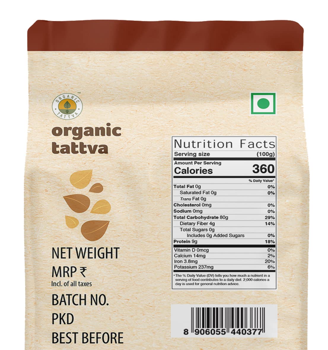 Organic Tattva Ragi Flour (500gm) is a wholesome and nutritious flour made from certified organic finger millet. Rich in dietary fibre, calcium, iron, and essential minerals, this flour supports strong bones, improved digestion, and overall wellness.