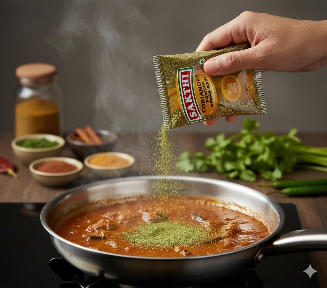 Sakthi Coriander Powder (100gm) is a premium-quality spice made from carefully selected, sun-dried coriander seeds that are finely ground to preserve maximum aroma and flavour. Known for its natural freshness and mild earthy taste, this dhaniya powder enhances curries, sabzis, chutneys, gravies, and everyday Indian dishes.
